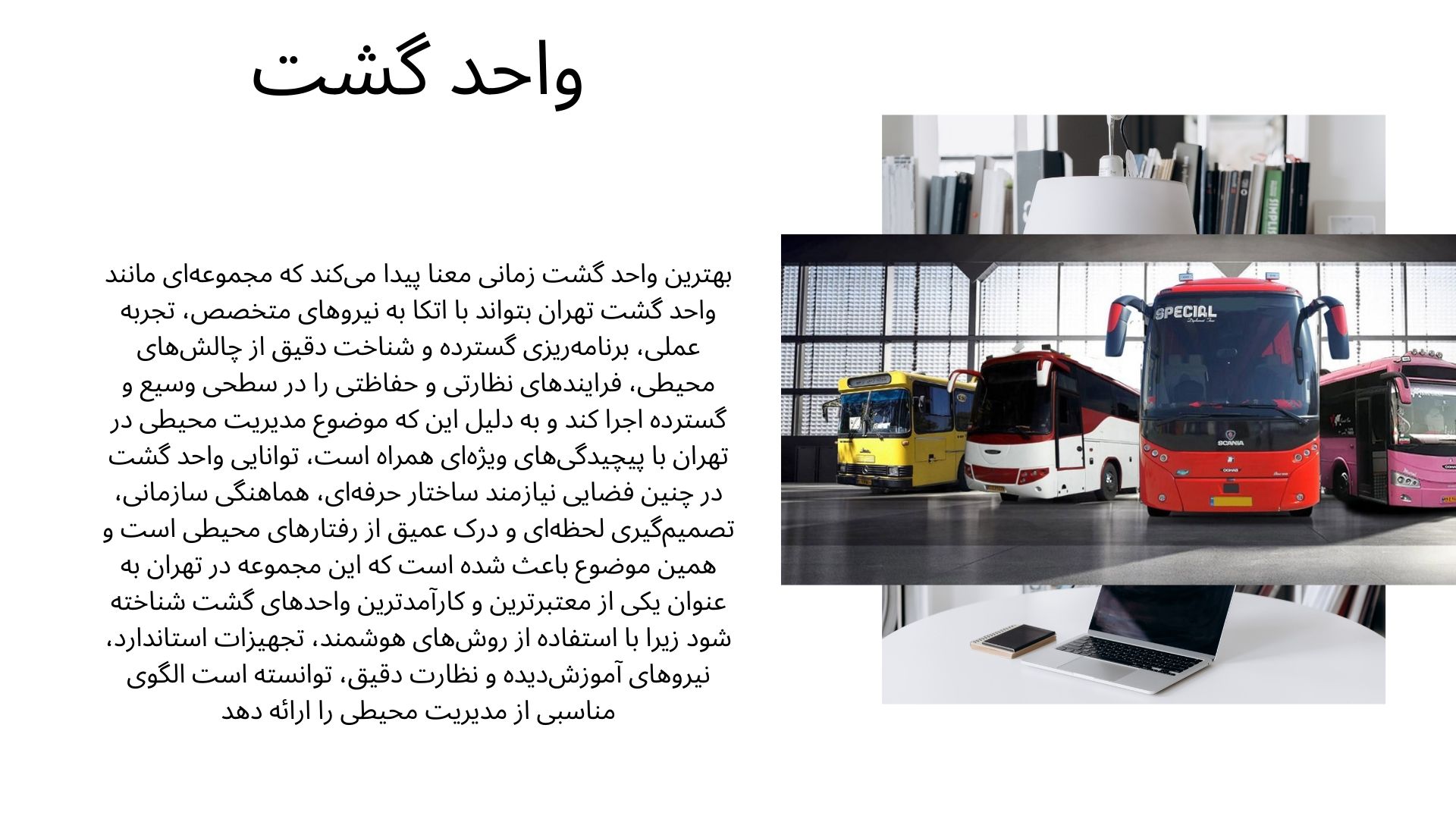 در این مقاله، به بررسی عمیق و تحلیل حوزه خدمات اجاره اتوبوس دربستی از واحد گشت میپردازیم و انواع واحدهای فعال از جمله واحد گشت بهشت زهرا، واحد گشت اماکن زیارتی، واحد گشت هتلها و شرکتها را معرفی میکنیم. برای هر بخش، مزایا، محدودیتها و بهترین کاربردها به طور شفاف بررسی خواهد شد. علاوه بر این، یک چارچوب مقایسهای تخصصی و یک راهنمای جامع برای انتخاب بهترین سرویس دربستی ارائه میدهیم تا شما بتوانید با آگاهی کامل، تصمیمی مطمئن برای تامین نیازهای حمل و نقل گروهی خود بگیرید.